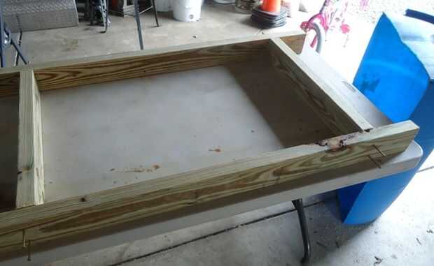 dos caídas hace, tuvimos dos cubiertas redone. Tener un suministro de material reciclado de las cubiertas anteriores, le dije a mi esposo que quería una compostera "muy grande" para mi corte jardín de la pila partes posterioras en el otoño. Y as