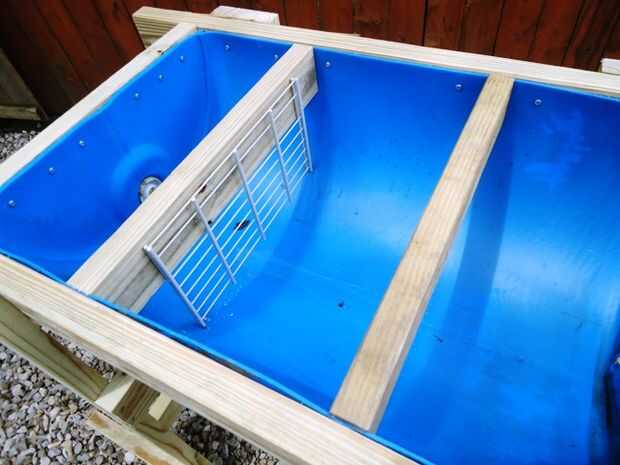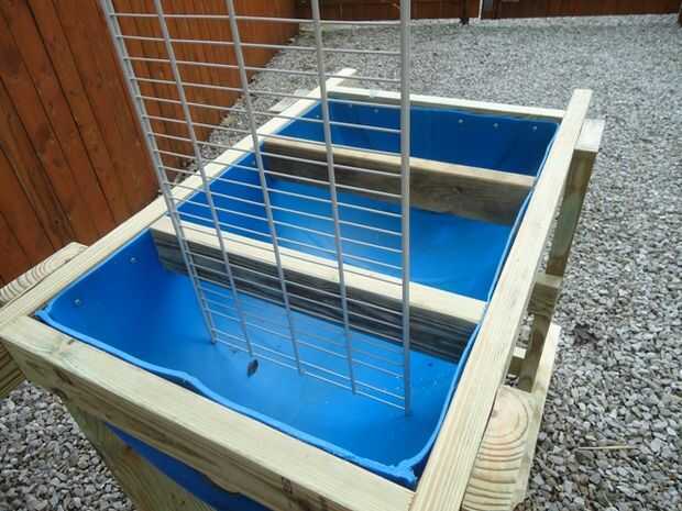 Un viejo estante de alambre funciona bien para mantener los tres compartimentos separados.