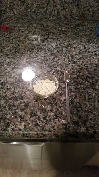 Mientras se hornean las galletas, vierta algunas izquierda sobre chips de chocolate blanco en un tazón pequeño y calor en el microondas durante 45 segundos. Se debe derretir el chocolate a un líquido. Guardar para cuando las galletas se enfrían.