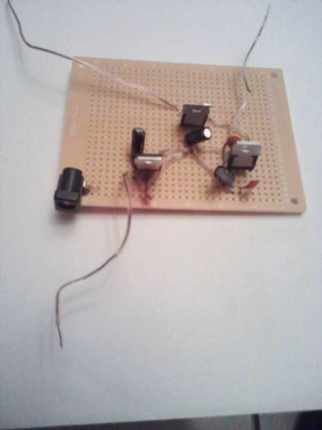 Estos reguladores de voltaje reciben el mismo voltaje que es de unos 15 voltios, tal tensión es la entrada que se suministra a cada regulador de voltaje por el transformador/adaptador de pared AC/DC.