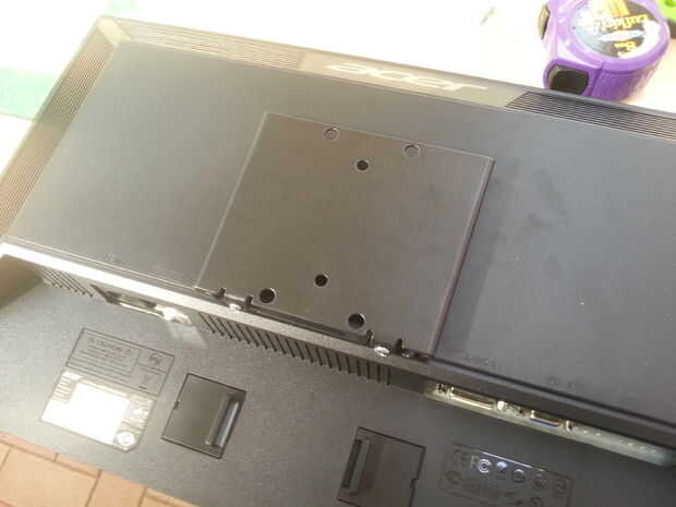 quería una manera agradable a mi configuración de monitor dual de montaje en la pared. Mis monitores son más de 5 años de edad y no tienen habilidades de montaje de pared bonito. Sin embargo tienen hendiduras poco perfectos en la base que me enganche