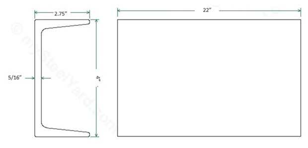 1 canal de aluminio C X la viga 22" de largo, 4" de alto, 1.75" de profundidad 5/16" de espesor. (ver imagen)