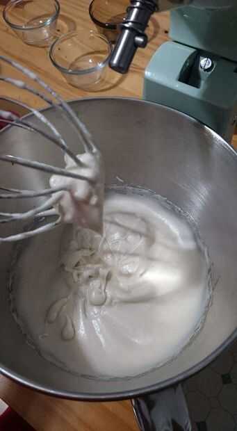 5.) látigo claras de huevo con azúcar morena y sal hasta que se formen picos suaves y esponjosas.