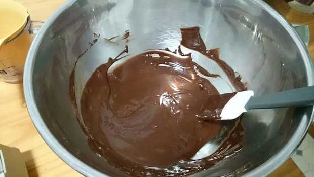 2.) derretir chocolate chips con la mezcla de chocolate líquida en una caldera doble. entonces dejar de lado que se enfríe.
