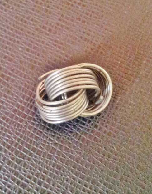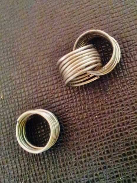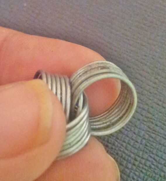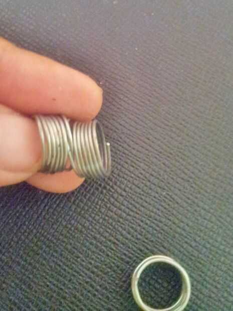 Para el grano que utilicé en mi colgante utilicé un lápiz como un mandril. Había utilizado 7 rondas para cada anillo. Una vez que enredan los 3 me pareció demasiado apretado. Esto estaba bien, ahora puedo cortar fácilmente el la ronda extra con un cortador de alambre facilitando se entrelazan los 3.