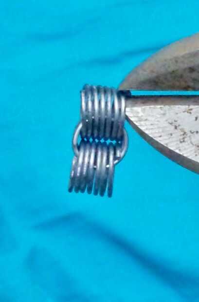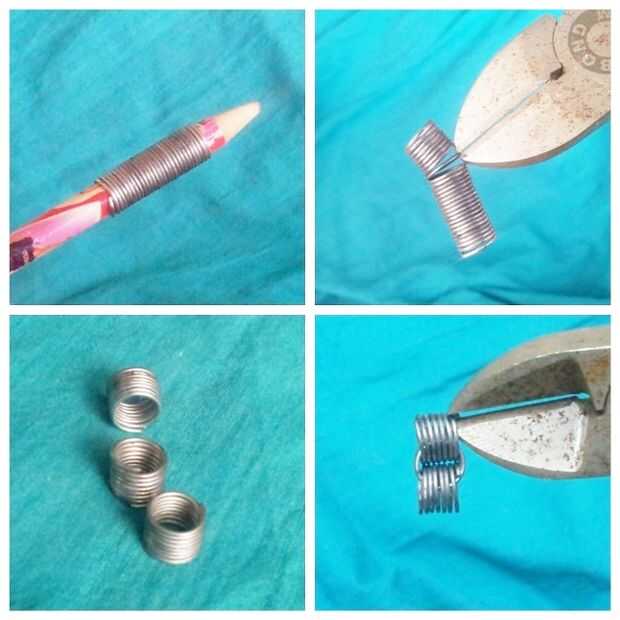 Primero gire el alambre de cerca y bien en mandril. Luego cortarlo 3 partes iguales con un cortador de alambre.