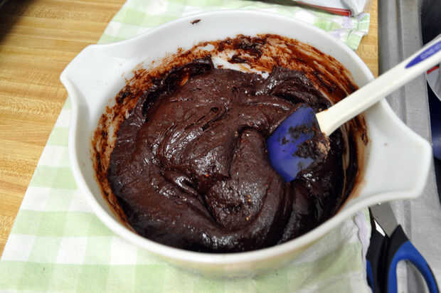 Debe tener una consistencia muy espesa, como masa de brownie (de ahí el nombre).