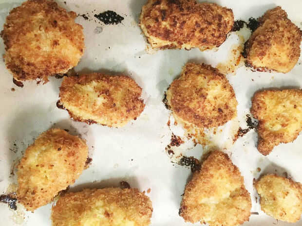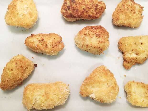 coco pollo horno frito receta:5 pechuga de pollo (yo usé sin hueso)coco 1 taza rallado (he utilizado sin azúcar)1 taza pan rallado (yo usé panko)2 huevostbsps. 3 aceite de olivaSalPimienta negraPimentónAjo en polvo (opcional)Instrucciones de la recet