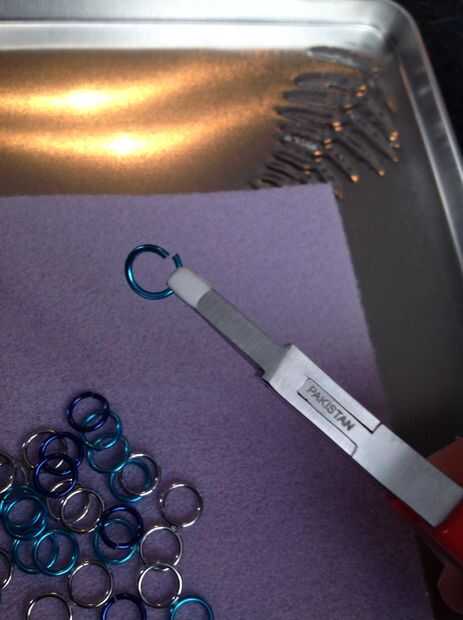 Necesita saber torcer abierto un chainmaille o enlace del anillo del salto. Este debe ser un giro, no de un tirón. Luego una vuelta de tuerca para cerrar otra vez.