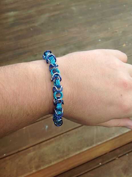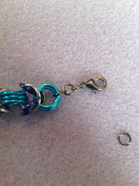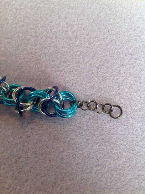Al final de su cadena, añadir un pequeño enlace a través de los últimos 3 enlaces de azul pálidos. Añadir un par de enlaces pequeños y luego unirse a la hebilla en.