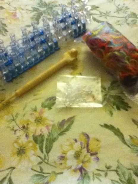 así que compré una bolsa de estas bandas de goma que viene con un gancho, broches y las bandas, pero ningún telar real arco iris de colores. No vienen con instrucciones y no sé que necesitas un telar para hacer este tipo de pulsera, pero había visto