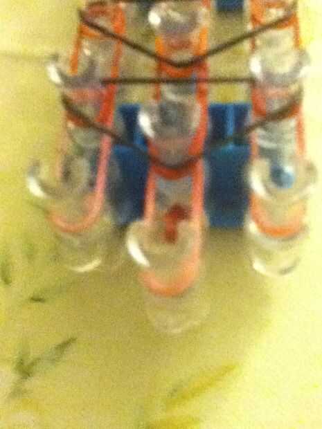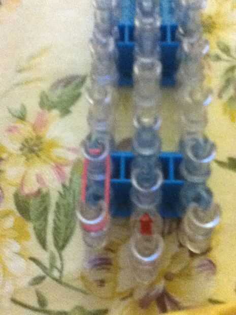 he modificado este video tutorial para crear una pulsera bigote! ¡ Disfrute!Paso 1: Se necesita: una tira de las clavijas de un telar del arco iris, dos colores de bandas (mina son de color rojo para las bandas de encuadre y plata para las bandas de