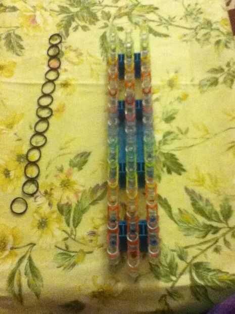 este es mi primer así y va a hacer mi mejor esfuerzoPaso 1: materiales Bandas de goma de telar del arco irisClip de C o s1row de telarPaso 2: paso 1 Banda de primera y en última 2 clavijasPaso 3: Paso 2 Toma otro color y tono en 1side de la bandaPaso