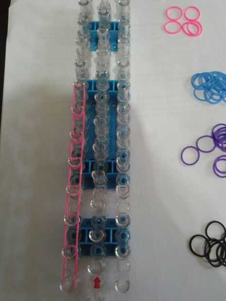 En primer lugar, puede que desee asegurarse de que la flecha está apuntando lejos de usted. Deberá poner las bandas en el lado izquierdo del telar de colores. Siga recto hasta llegar al final del telar.