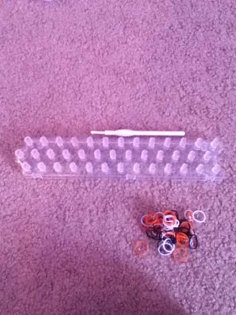 para mi esta es una de las pulseras de goma más fácil, después de la cola de pescado e invertida espina de pescado.Paso 1: Lo que usted necesita Va a utilizar:Tablero de clavija de telar •un arco iris•La bandas•gancho/selección de herramientas•C o cl