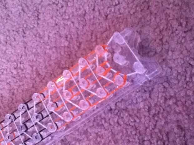 Paso 1: Comenzar la pulsera Primero usted tiene que asegurarse de que las flechas de su telar son hacia arriba y poner las bandas en el lado derecho hacia arriba y hacerlo hasta que la izquierda derecha y centro se llenan de bandas. Pero no las clavi