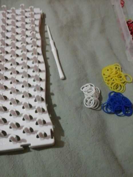 Paso 1: fuentes de Necesita el telar del arco iris a partir de kit y algunas elásticas.Paso 2: Colocar las bandas Se empieza por tomar tu primer color y ponerlo en la primera clavija izquierda.Paso 3: Colocar las bandas Continuar a poner las bandas d