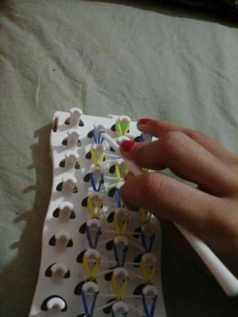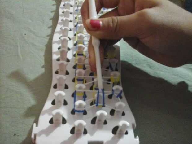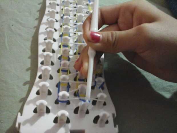 Paso 1: fuentes de Necesita el telar del arco iris a partir de kit y algunas elásticas.Paso 2: Colocar las bandas Se empieza por tomar tu primer color y ponerlo en la primera clavija izquierda.Paso 3: Colocar las bandas Continuar a poner las bandas d