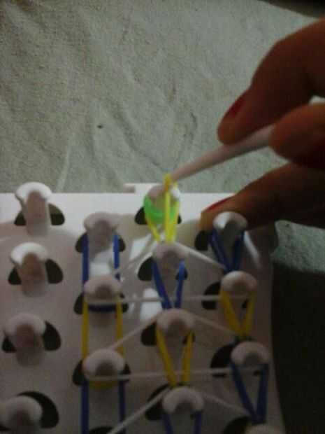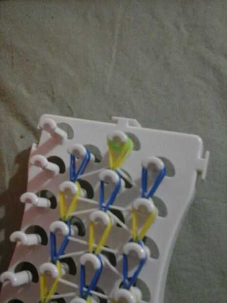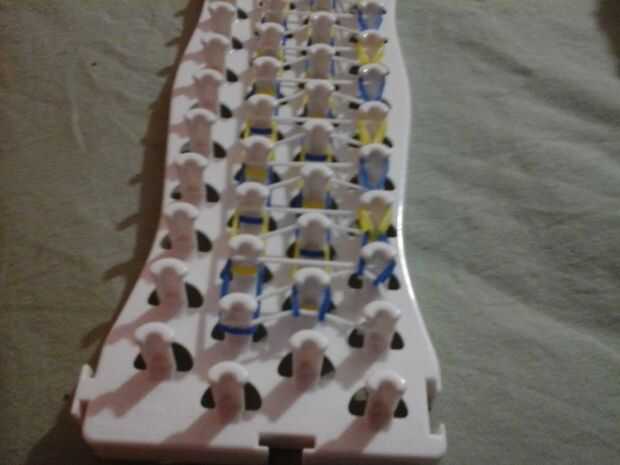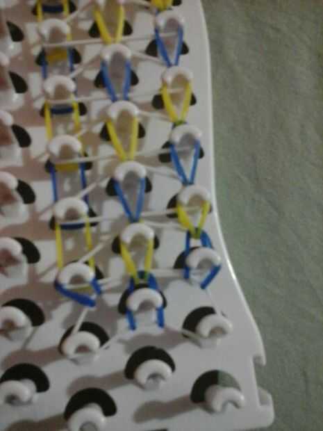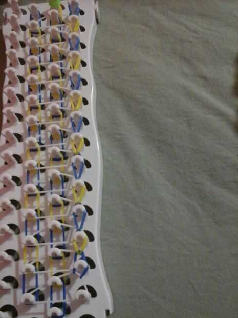 enseñará usted cómo hacer un triple soloPaso 1: Lo que necesitará Necesita...• un telar• un gancho negra• elásticosPaso 2: Colocación de banda Poner bandas en cada pin va hacia arriba como en la imagenContinuar hasta llegar a la parte superiorPaso 3: