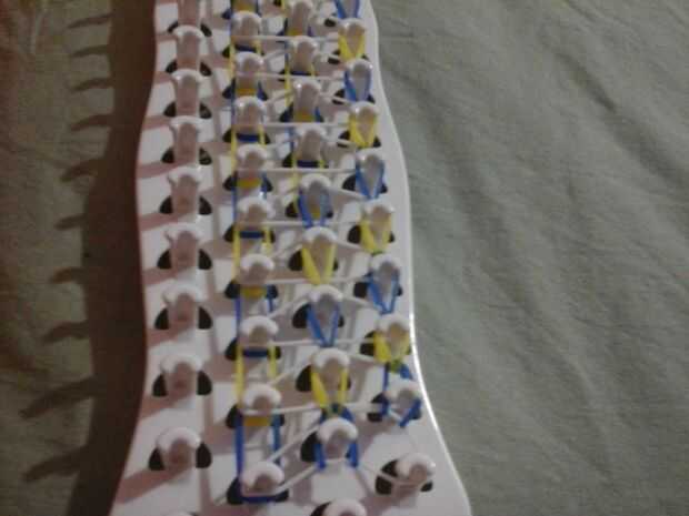 Paso 1: Colocación de las bandas Empezar por takin uno elástico y colocarlo donde mostré.Paso 2: Colocar las bandas a continuación, tomar otro color y ponerlo en la dirección opuesta.Paso 3: Colocar las bandas a medida que continúe ponerlo en debería