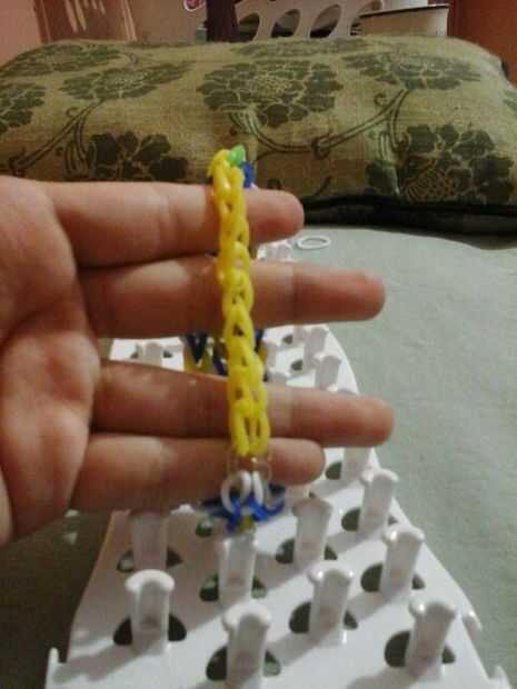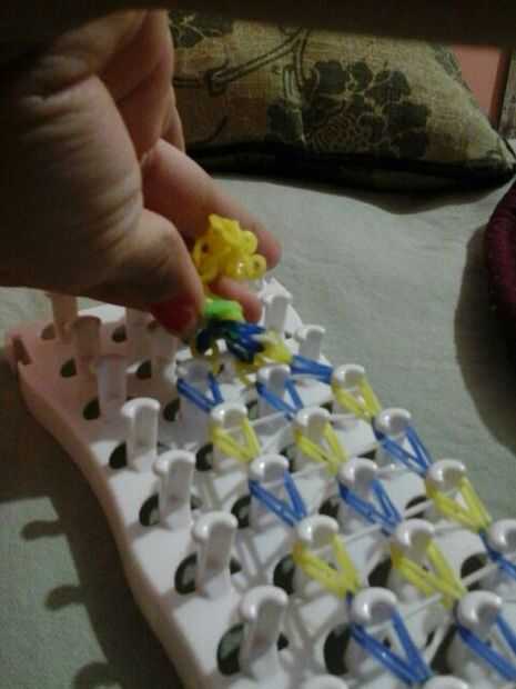 aquí hay un tutorial de una pulsera única triple.Paso 1: materiales Necesita 3 bandas de colores diferentes, su telar y su gancho.Paso 2: Poner las bandas en This step is easy! Simplemente poner las bandas en una fila y al revés por triángulos.Paso 3