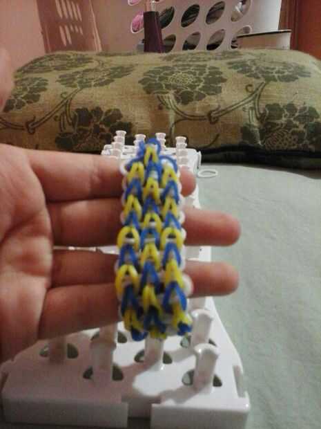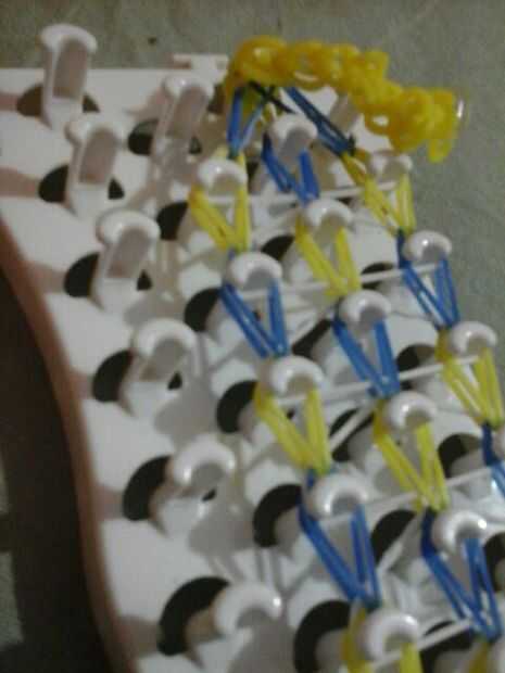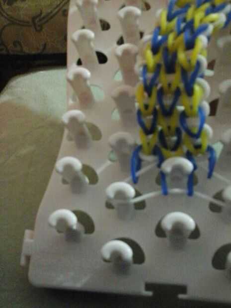 enseñará usted cómo hacer un triple soloPaso 1: Lo que necesitará Necesita...• un telar• un gancho negra• elásticosPaso 2: Colocación de banda Poner bandas en cada pin va hacia arriba como en la imagenContinuar hasta llegar a la parte superiorPaso 3: