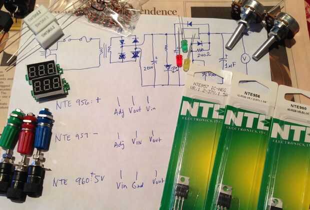 IC1: NTE956 variable regulador positivo (hoja de datos). Puede utilizarse un LM317, pero tenía la parte NTE en mano.