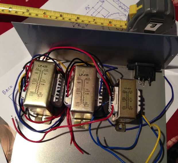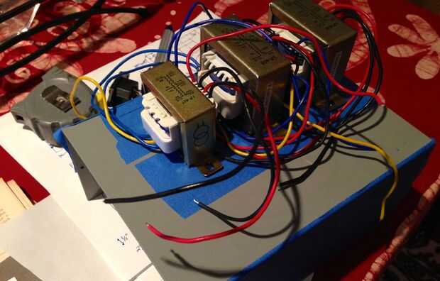 Primero puse los transformadores dentro de la caja, dependiendo de donde debían estar. Porque el transformador de 12V es más pequeño que el 18V más, coloqué la toma de corriente más cercana al transformador de 12V. He puesto el fusible cerca de la toma de corriente para minimizar la longitud del cable "caliente" entre ellos.