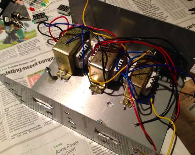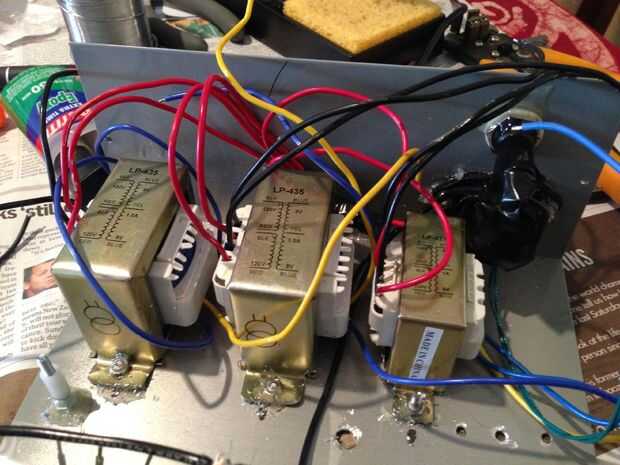 Punto de prueba: he probado cada conexión completamente, para asegurarse de que no había comete errores. En este punto, apliqué potencia y probado para asegurarse de que cada conmutador se convertiría en su transformador asociado.