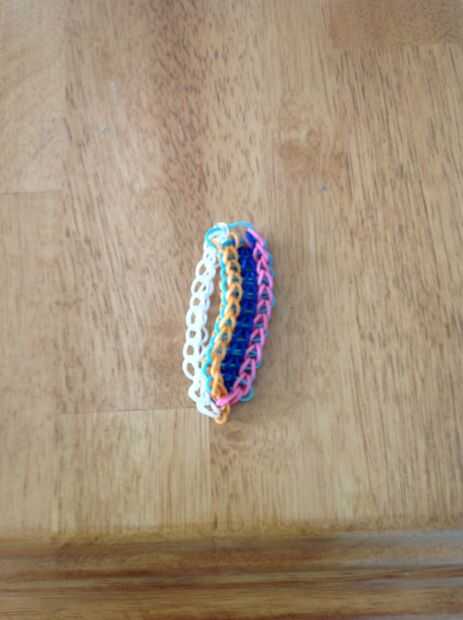 Espero que funcione para usted!Paso 1: Paso 1: reunir su equipoSe necesita:-un telar-12 bandas azul-12 bandas verdes-12 bandas púrpura-12 bandas blancas-1 banda acabado blanco-un clip de "s" o "c"Paso 2: Paso 2: colocar las bandasAsegú