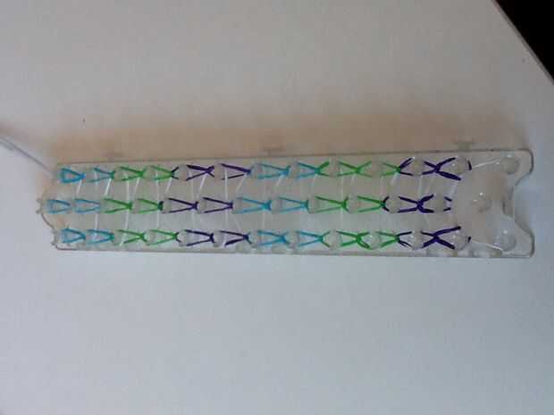 Paso 1: fuentes de Necesita el telar del arco iris a partir de kit y algunas elásticas.Paso 2: Colocar las bandas Se empieza por tomar tu primer color y ponerlo en la primera clavija izquierda.Paso 3: Colocar las bandas Continuar a poner las bandas d