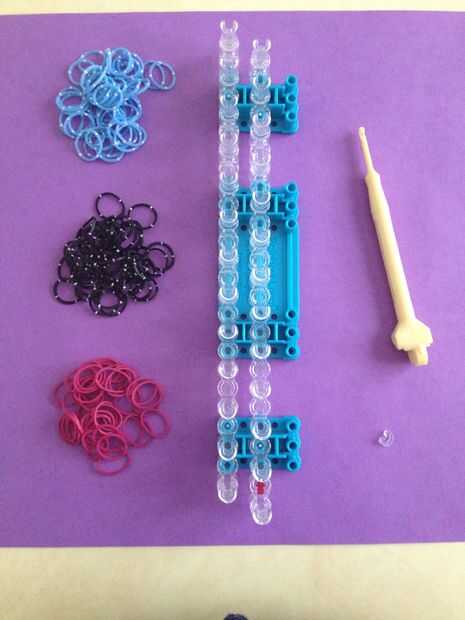 Paso 1: Obtener los suministros 1 loomAlgunas bandasgancho de 1 ganchilloY un clip de CPaso 2: Colocar las bandas Inicio de como si se tratara de una extensión para la pulsera pero ir todo el camino hasta el telar en todas las filas, colocar bandas e