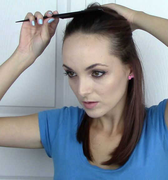 Para este look vas a necesitar un bobble, cepillo y horquilla.1. primero lo que vas a querer hacer es peinar tu cabello por lo que no hay tats en tu pelo.2. en segundo lugar vas a cepillar el cabello hacia arriba en una coleta alta y atar en un apret