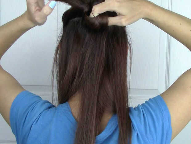 1. Decida donde quiere su primera cola de caballo para ser. Mina comienza sobre una pulgada por encima de mi oreja, pelo liso con un peine si es necesario. Atar la cola de caballo primero pero asegúrese de no tirar de la cola de caballo apretada, desea que sea suelto.