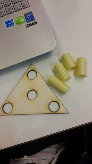 En primer lugar, hice un archivo svg para láser cortar un pequeño trozo de madera. El diámetro de los círculos son 1,7 cm. PVC tubos de sí mismo es de alrededor de 1,65 cm. Se explicará la razón por qué hice el círculo más grande en el paso 2. Corto 4 piezas de pvc. Usted puede cortar el tubo dependiendo de cómo alto tri-pod gustaría ser. Cómo le gustaría cambiar la superficie de tu triángulo.