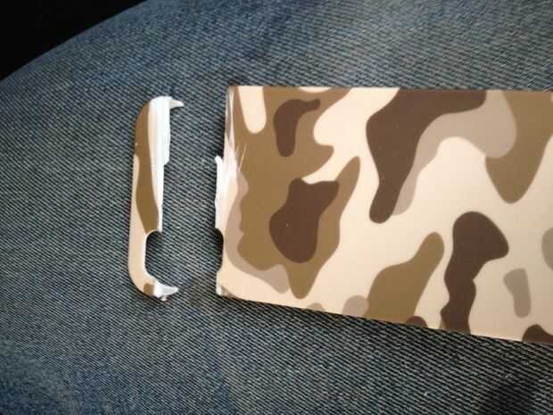 Desea cortar la parte superior de la caja de iphone con los clippers o sierra de modo que en lugar de recortar el iphone en solo se deslice en su lugar.