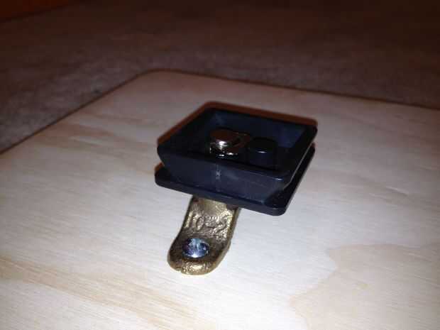 Después de dejarlo secar, redondear las esquinas con la herramienta archivos o poder y otra vez la arena. Voltearlo y fije la abrazadera en la parte posterior de la placa base.