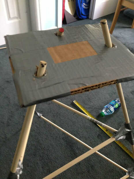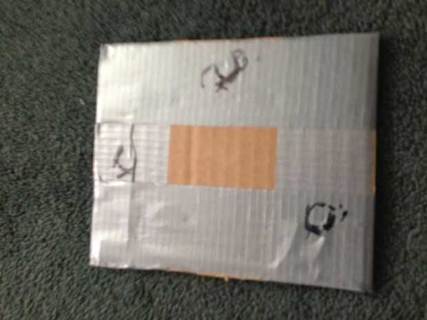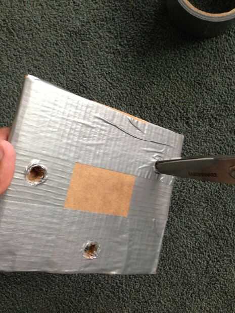 Para hacer la base, cortar algunas capas de cartón y cinta adhesiva.