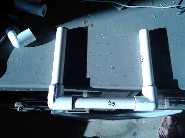 Pegamento primero los montantes (5-3/8") hasta los codos. Esto nos permitirá alinear los montantes y pegar la sección de centro. A continuación pegue la sección central (6-1/4") para cada conjunto de columnas. Me pareció más fácil alinear las columnas si he pulsado plana contra la mesa de trabajo mientras que el pegamento en la sección de centro.