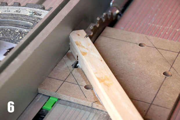 • Hacer al borde que sea lo suficientemente grande como para apoyar el teléfono con la pieza de madera (Foto 2). Usé la Sierra de mesa para hacer esto.
