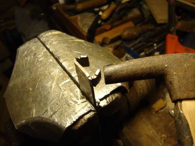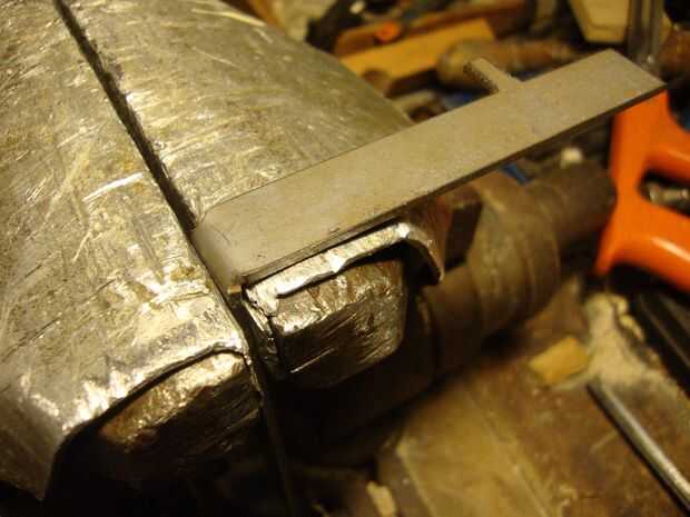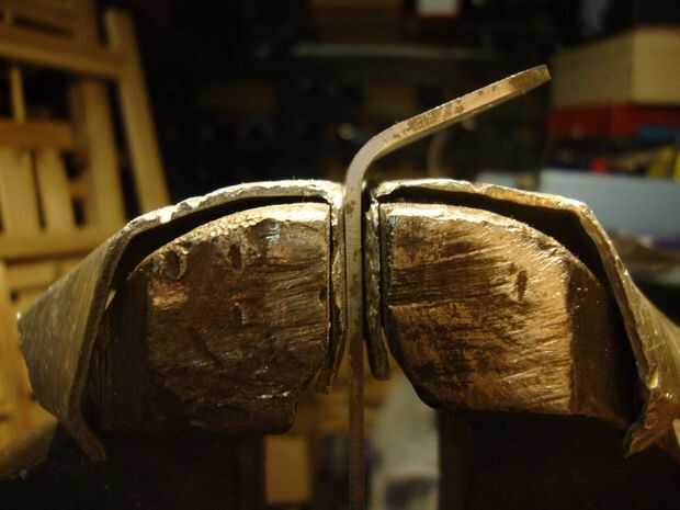 Nuestras piezas de acero cortadas se llegó, es el momento de doblarlas para comenzar la construcción del trípode! Utilicé una pinza para sostener las piezas en posición y un martillo para doblar el metal. También usé una sierra para cortar 7 tornillos y reducir su longitud.