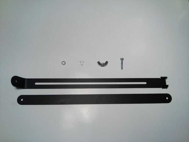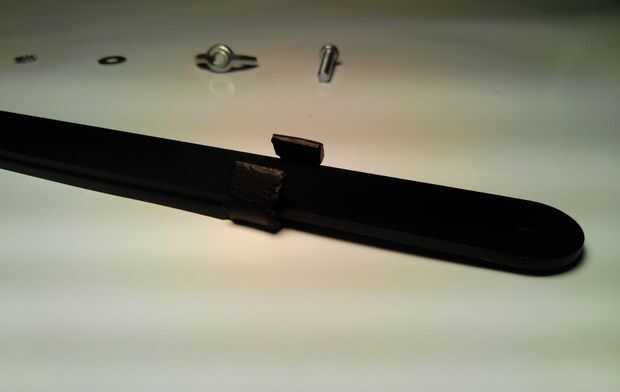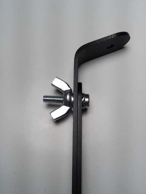 Es el momento a la Junta los pies. Usé las 6 piezas de acero, 3 pernos, 3 tuercas de mariposa, 3 arandelas de bloqueo de diente y 3 arandelas.