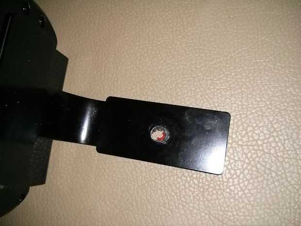 Ahora solo perfore un agujero de 1/4 de pulgada en el soporte de montaje del soporte de teléfono celular. Hice mío exactamente en el centro aunque no creo que realmente importa donde va.