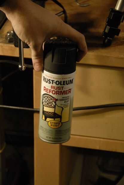 El último paso es hacer el stand bastante. Me daba pereza al principio para moler la superficie de la oxidación en mi Monte usé moho convertir pintura primero. Probablemente desee usar un cepillo de alambre o algo en las partes que sean inaccesibles después de la soldadura.