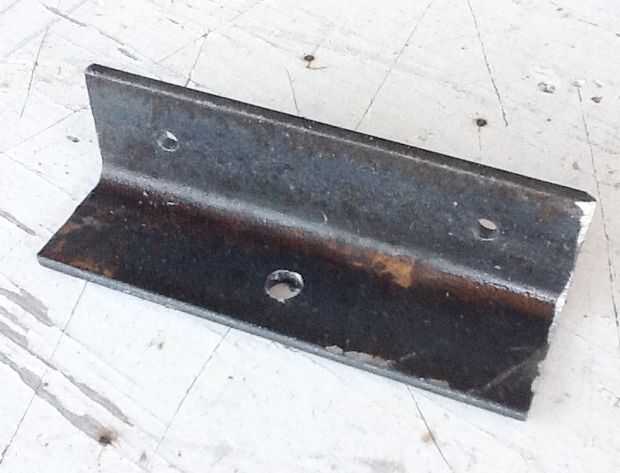Corte un pedazo de ángulo de hierro de 4 pulgadas de largo. Moler a los bordes ásperos. Marca para la perforación. En una cara taladre dos agujeros de sólo lo suficientemente grandes como para pasar tornillos #10 (cerca de 3/16 pulgadas). En la otra cara del taladro un agujero un poco más grande que 1/4 de pulgada. Espacio de los agujeros igualmente de los extremos del hierro de ángulo como se muestra.