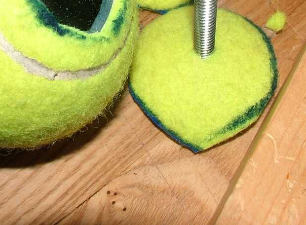 Doblar la arandela e insertarlo en el agujero redondo en la pelota de tenis con el perno que sobresale.