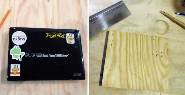 Empieza por medir las dimensiones de su laptop, luego añadir otros 50mm (2") a cada lado como un ribete de búfer que se instalarán más adelante. Las dimensiones de mi portátil fueron 260mmx184mm (10,25" x7.25"), además el búfer da finales dimensiones de 310mmx234mm (12,25" x9.25").
