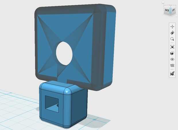 Importen la cara caja de diseño 123D, luego añade un fondo sencillas trípode para él. Yay Creative Commons!