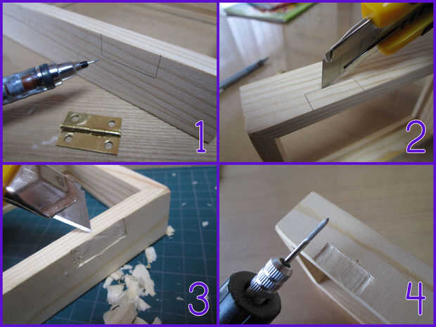 Trazar el área a la cual se colocará la bisagra. Las áreas empotradas un poco más grande que la bisagra es una buena idea, pero cuánto más grande es hasta su sentido estético. En mi caso, los marcos a la que originalmente se unieron las bisagras tenían hendiduras ligeramente sobredimensionados, medido y marcado para que coincida con aquellos.