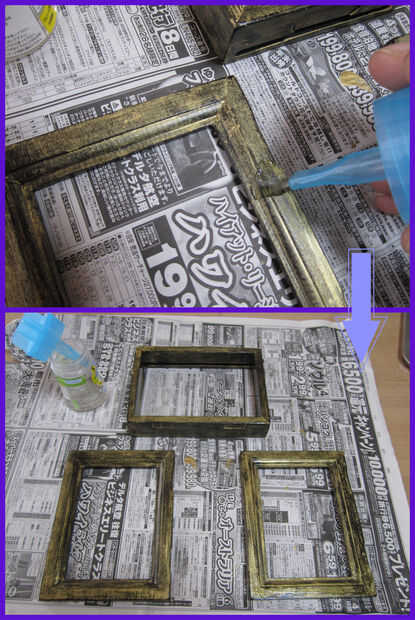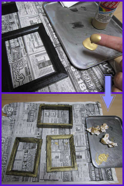 Tomar la pintura oro en el dedo (si es acrílico) o un calcetín viejo u otra pieza de tela. Frote la pintura en el color de la capa de base que está tratando de pasar a la madera por debajo (terminé usando ambos de mis manos todos para realmente luego frote).